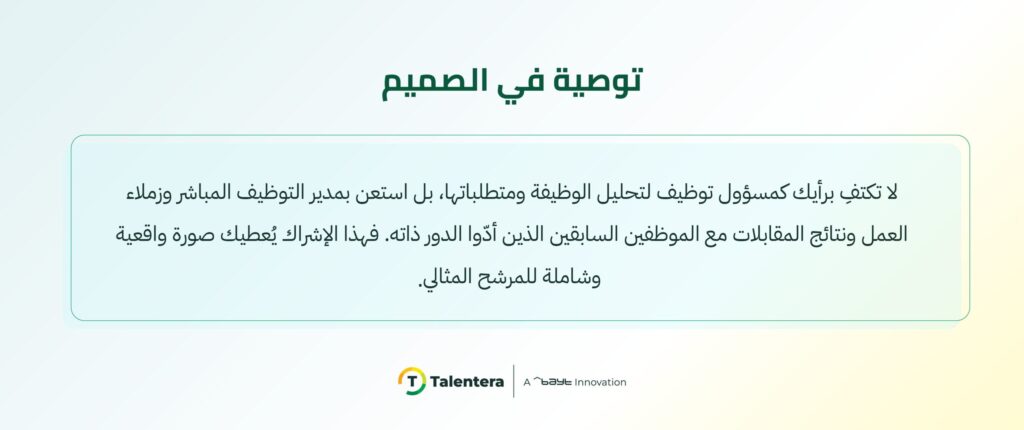 وبعد الاتفاق، اجمع كل الملحوظات في ملف منظم -يُفضل أن تستخدم هنا نموذج تقييم موحّد- ليسهُل الرجوع إليه لاحقًا عند مقارنة المرشحين أو عند مراجعة النتائج من قبل لجان أخرى في الشركة.