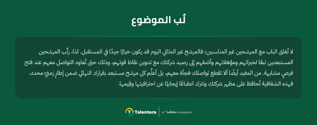 إلى جانب التوصيات السابقة، فكّر في اتباع الخطوات التالية لكي تُحسِّن من تجربة المرشحين: