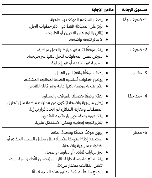 لاحظ معي أن هذا السؤال يختبر مهارة حل المشكلات. ويمكنك تقييم الإجابات التي ستحصل عليها تبعًا لهذا السُلّم (من 1 إلى 5):